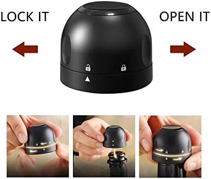 Fácil de usar, los tapones adoptan un diseño giratorio, rápido para girar la parte superior en sentido contrario a las agujas del reloj para aflojar y en el sentido de las agujas del reloj para apretar, lo que prolongará la frescura del vino.
