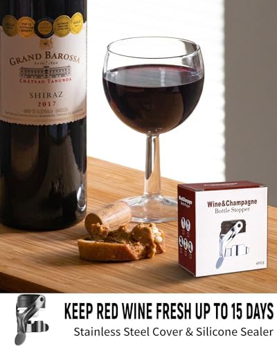 【Perfecta retención de frescura】nuestro vástago de silicona de Tapónes de botella de champán en el centro sella la boca de la botella y aísla el aire dentro de la botella, así como la convección del aire fuera de la botella, preservando mejor el sabor y las burbujas del vino abierto. Conserva mejor que el corcho original y prolonga la frescura del vino.