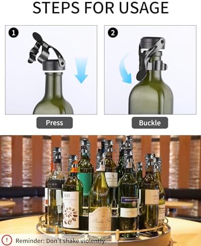 【Fácil de usar y limpiar】Simplemente inserte el tapon botella vino en la botella de vino y fíjelo al cuello de la botella. Cuando escuches el clic, está listo. El Tapa Botellas de Vino es reutilizable, simplemente enjuague con agua fría y seque con un paño; apto para lavavajillas.