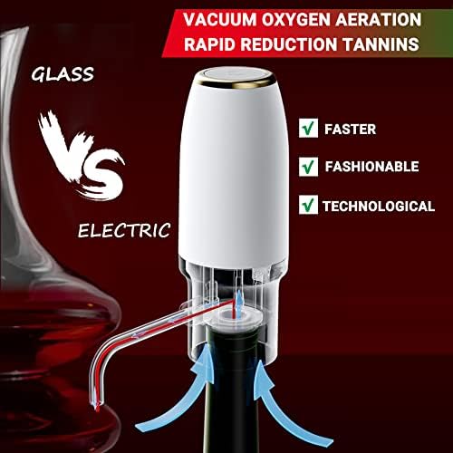 [Carga rápida USB] La batería de iones de litio incorporada se puede cargar completamente en 90 minutos, proporcionando suficiente energía para airear aproximadamente 35 botellas de vino con una sola carga.