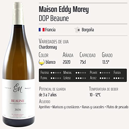 Descubre Beaune blanco 2020 de Maison Eddy Morey, un vino excepcional de la Denominación de Origen Protegida (DOP) Borgoña, Francia. Este elegante vino, elaborado con uvas Chardonnay, cautivará tus sentidos con su frescura y sofisticación. Ideal para amantes del vino que buscan una experiencia refinada y equilibrada, este pack de 6 botellas de 75 cl es perfecto para ocasiones especiales o para disfrutar en casa.