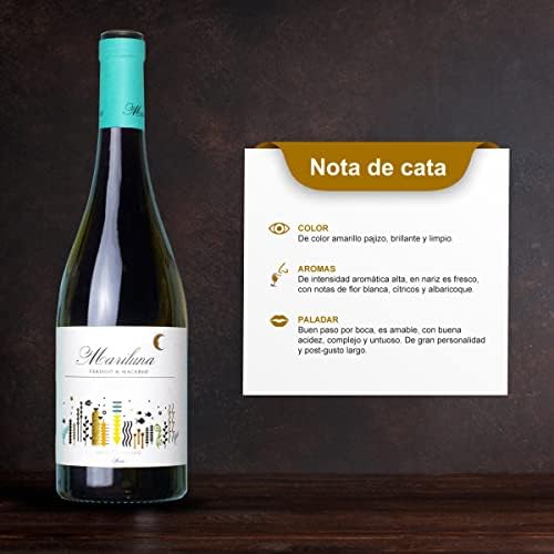 VINO BLANCO: Mariluna Blanco es un vino ecológico que tiene su origen en nuestros viñedos de suelos ricos en calizas con texturas permeables. Está elaborado en un área de producción con una altitud de 900 m y un clima mediterráneo con influencia continental. Contenido: Botella de vino ecológico de 750 ml.