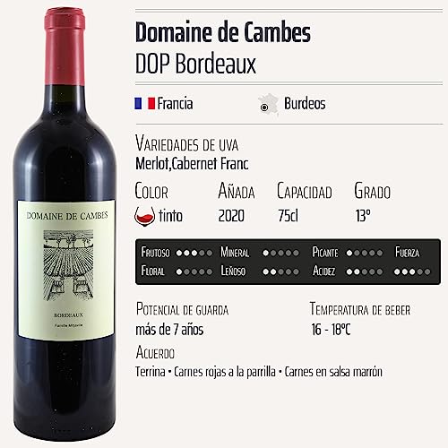 Descubre el Bordeaux tinto 2020 – Domaine de Cambes, una joya de la región de Burdeos, Francia. Este vino, elaborado con las variedades de uva Merlot y Cabernet Franc, es perfecto para los amantes del buen vino que buscan una experiencia gustativa única. Con un formato de 3 botellas de 75cl, es ideal tanto para disfrutar en una cena especial como para regalar a un verdadero aficionado al vino. Su rica complejidad y equilibrio lo convierten en la elección perfecta para acompañar platos de carne, quesos curados y momentos de celebración.