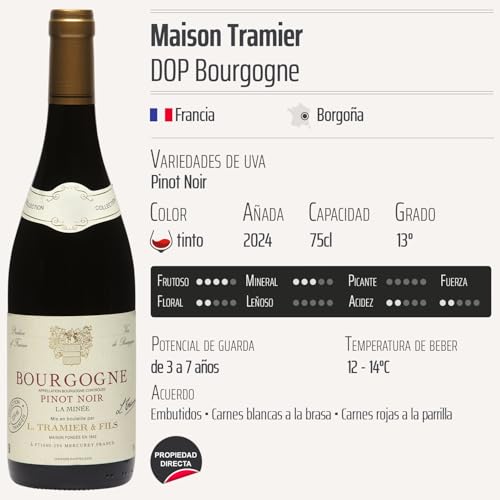 Descubre el Bourgogne Pinot Noir La Minée tinto 2024 de Maison Tramier, un vino extraordinario que captura la esencia del famoso terroir de Borgoña, Francia. Este vino tinto, elaborado exclusivamente con variedades de uva Pinot Noir, ofrece una experiencia sensorial única para los amantes del vino y es ideal para acompañar cenas elegantes, celebraciones especiales o simplemente para disfrutar en cualquier ocasión. Su calidad apreciada lo convierte en un regalo perfecto para quienes valoran los vinos finos.