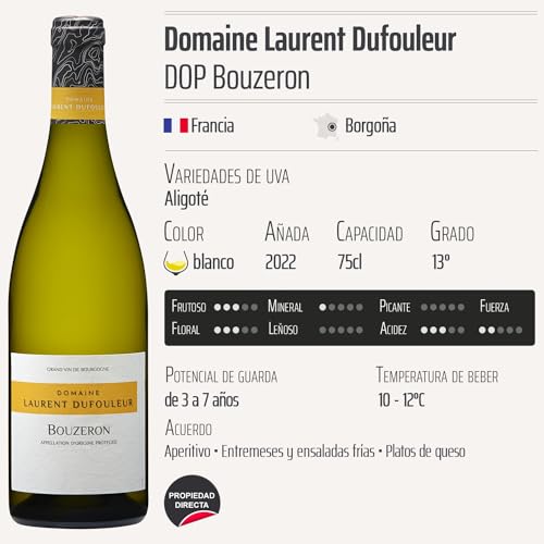 Descubre el Bouzeron blanco 2022 del Domaine Laurent Dufouleur, un vino DOP de la región de Borgoña, Francia. Este exquisito vino, elaborado con la variedad de uva Aligoté, es ideal para los amantes de los vinos frescos y afrutados. Su perfección lo convierte en la elección perfecta para acompañar tapas, mariscos y platos de pescado, así como para disfrutar en cualquier ocasión especial. Con un formato de 12 botellas de 75 cl, es una excelente opción tanto para consumidores individuales como para restauradores y anfitriones de eventos.