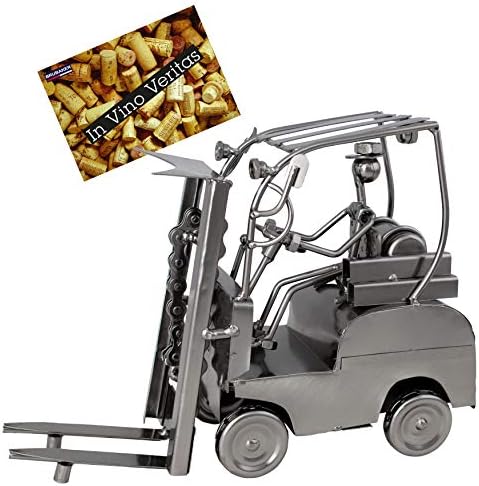 Un hombre sentado al volante de una carretilla elevadora. Una gran escultura con muchos detalles como cadena de elevación, luz, acelerador y palanca de control y batería. La botella se transporta de forma auténtica en las grandes horquillas. El apilador inspira con su aspecto moderno hecho de piezas de metal soldadas y es un gran atractivo en todas las áreas de la vivienda. Se puede colocar en cualquier lugar de la habitación y es hermoso desde todos los lados.