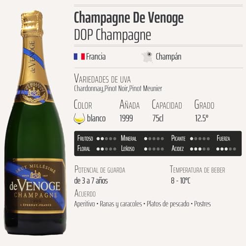 Disfruta de la exclusiva experiencia que ofrece el Champagne Brut Millésimé blanco 1999 – Champagne De Venoge y conviértelo en el centro de atención en tu próxima celebración.