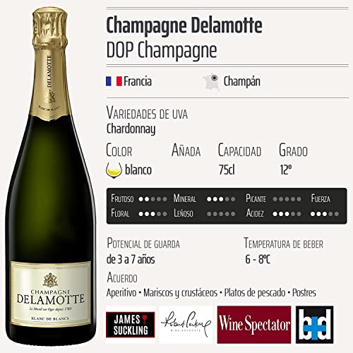 Descubre el Champagne blanco de Blancs Brut de Champagne Delamotte, un auténtico tesoro de la región de Champagne en Francia. Este exquisito champán, elaborado exclusivamente con uvas Chardonnay, es la elección perfecta para los amantes del vino que buscan una experiencia única y sofisticada. Con una impresionante puntuación de 92/100 de James Suckling, este producto es ideal para celebraciones especiales, cenas elegantes o simplemente para disfrutar de un momento de lujo en casa.
