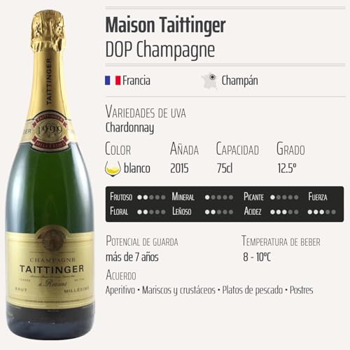 ¡Disfruta la excelencia y sofisticación del Champagne Millésimé Brut blanco 2015 de Maison Taittinger!