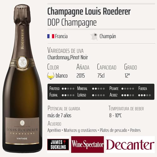 El Champagne Vintage Brut blanco 2015 sobresale en varias áreas. Su proceso de elaboración se lleva a cabo bajo estrictas normas de calidad, siguiendo la tradición de la Maison Roederer. Entre sus características más destacadas se encuentran: