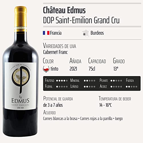 El Château Edmus Saint-Emilion Grand Cru PHI by Edmus tinto 2021 es una elección sublime que no decepcionará en ninguna ocasión.