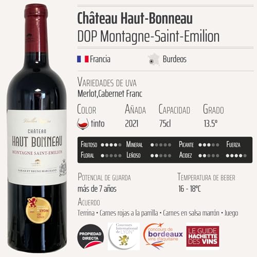 ¡No dudes en añadir Château Haut-Bonneau Montagne-Saint-Emilion Vieilles Vignes tinto 2021 a tu colección y deleitarte con su inigualable esencia!