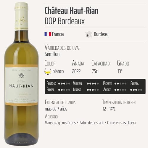 Descubre el exquisito Château Haut-Rian Bordeaux Les Acacias Sélection Parcellaire blanco 2022, una joya vinícola de la región de Burdeos, Francia. Este vino, elaborado con la variedad de uva Sémillon, es perfecto para los amantes del vino blanco que buscan una experiencia sensorial única. Con su carácter fresco y elegante, es ideal para acompañar mariscos, pescados y platos ligeros. Su presentación en estuches de 6 botellas de 75cl lo convierte en la opción perfecta para celebraciones, cenas o como un regalo sofisticado para entusiastas del vino.