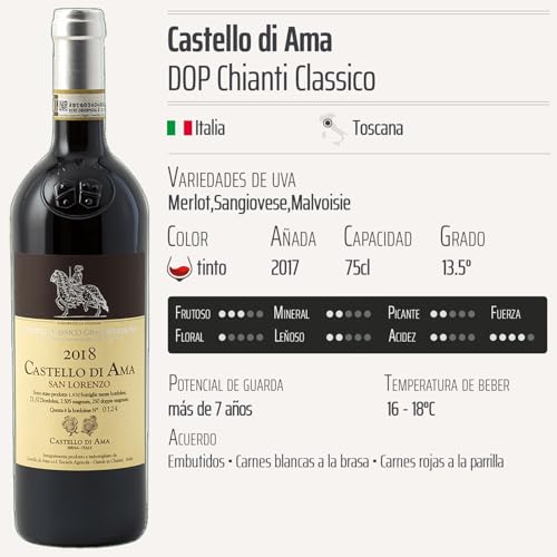 Descubre el Chianti Classico Gran Selezione San Lorenzo tinto 2017 de Castello di Ama, un vino que representa la esencia de la Toscana, Italia. Con su Denominación de Origen Protegida (DOP), este vino tinto es ideal para los amantes del buen vino que buscan una experiencia sensorial única. Perfecto para acompañar tus cenas elegantes o para disfrutar en una ocasión especial, este Chianti es un homenaje a la tradición vinícola italiana, elaborado con una cuidadosa selección de uvas Merlot, Sangiovese y Malvoisie. Presentado en un elegante pack de 3 botellas de 75cl, es una opción exquisita tanto para regalar como para disfrutar en casa.