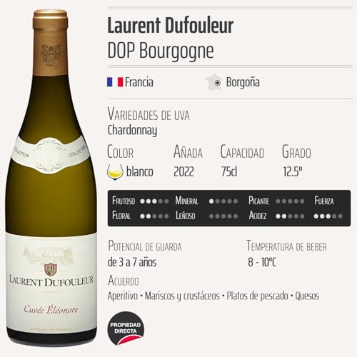 El Bourgogne Cuvée Éléonore blanco 2022 destaca por su complejidad aromática y su paladar suave y cremoso. Entre sus características más sobresalientes se encuentran: