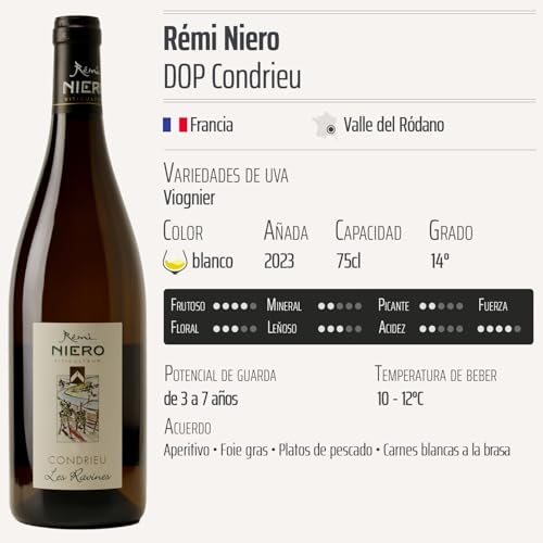 ¡No pierdas la oportunidad de deleitarte con el Condrieu Les Ravines blanco 2023 de Rémi Niero, un vino que promete enriquecer cualquier ocasión!