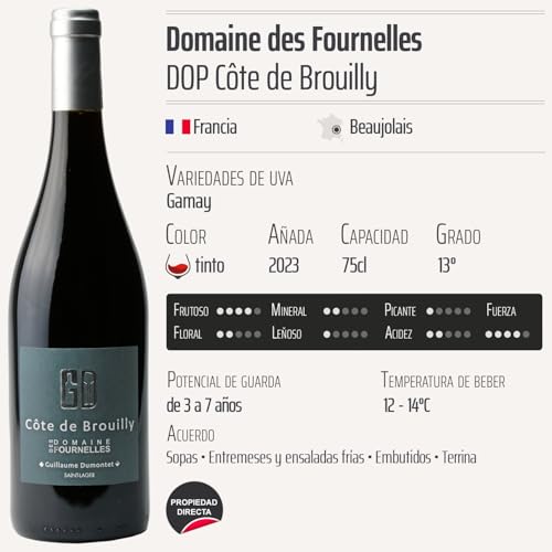 Descubre el impresionante Côte de Brouilly Tradition tinto 2023 del Domaine des Fournelles, un vino de Denominación de Origen Protegida (DOP) elaborado en la renombrada región de Beaujolais, Francia. Este exquisito tinto de 12x75cl está elaborado principalmente con la variedad de uva Gamay, que aporta frescura y una vibrante expresión frutal. Ideal para amantes del vino que buscan calidad y autenticidad, este vino destaca por su carácter accesible y versátil, perfecto para acompañar una variedad de platos o disfrutar en una ocasión especial.