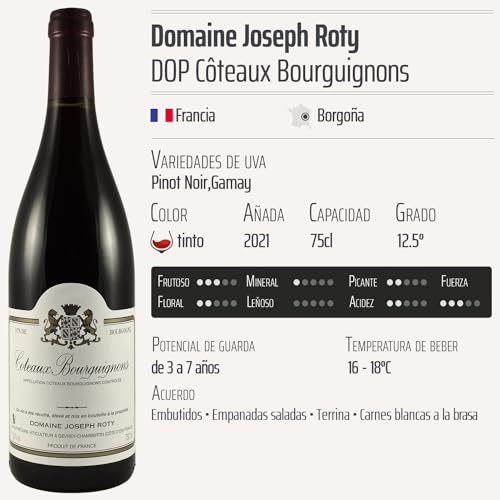 Descubre el excepcional Côteaux Bourguignons tinto 2021 del Domaine Joseph Roty, una joya de la región de Borgoña en Francia. Este vino, elaborado con las variedades de uva Pinot Noir y Gamay, es ideal tanto para los aficionados del vino como para aquellos que buscan introducirse en el fascinante mundo de los caldos burgundios. Con sus notas frutales y su elegante estructura, es perfecto para acompañar desde platos de carne hasta degustaciones en momentos especiales.