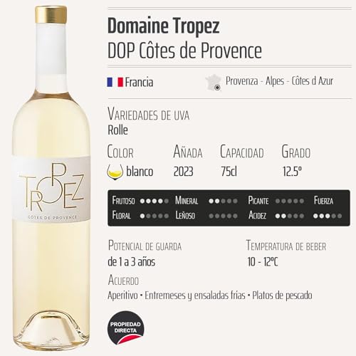 Los amantes del vino han elogiado el Côtes de Provence Tropez blanco 2023 por su excepcional calidad y su precio accesible. Un usuario comenta: "Es perfecto para mis cenas de verano. Su frescura y sabor ligero lo hacen ideal para maridar con pescados y mariscos." Otro cliente destaca: "Cada botella es un viaje a la costa francesa, refrescante y muy agradable. Definitivamente lo volveré a comprar." Con una calificación promedio de 4.8 sobre 5, este vino ha conquistado el paladar de aquellos que buscan disfrutar de la auténtica Provence en cada copa.
