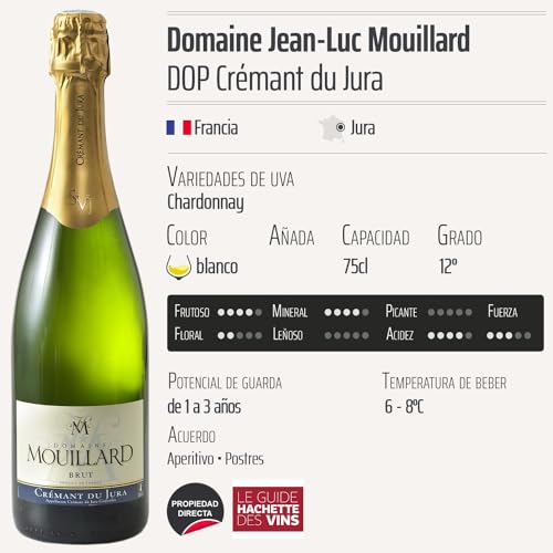 Descubre el Crémant du Jura Brut blanco de Domaine Jean-Luc Mouillard, un vino espumoso de la Denominación de Origen Protegida (DOP) del Jura, Francia. Este exquisito crémant, elaborado mayoritariamente con uvas Chardonnay, ofrece una experiencia sensorial única que deleitará a los amantes del vino y a quienes buscan algo especial para celebrar momentos memorables. Ideal para maridar con aperitivos, pescados y mariscos, este vino es perfecto tanto para ocasiones festivas como para un brindis cotidiano.
