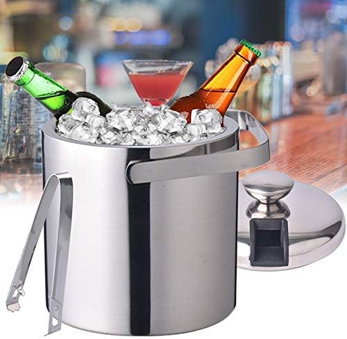 Cubo de hielo de acero inoxidable con tapa, pinzas y colador
