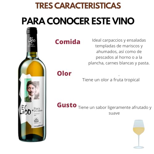 El Loco de Finca la Colina 2021 destaca por su equilibrio único entre la frescura y la elegancia. Este vino blanco combina la vivacidad del Verdejo con la sutileza de la Sauvignon Blanc, resultando en un perfil aromático excepcional. Con notas de frutas tropicales, cítricos y toques herbáceos, su sabor es característico de la región de Rueda. Su acidez bien integrada proporciona una gran frescura, lo que lo convierte en un vino sumamente versátil. Cada botella viene con un diseño atractivo que reflejará el espíritu festivo de cualquier ocasión.