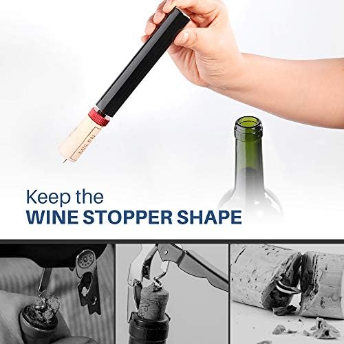????【Mantenga el corcho intacto】 El corcho no se dañará al abrir la botella de vino. Sin daños, sin retención, sin inclusión de escoria, lo que garantiza la seguridad del cuello de botella. Nota: alinee el centro e insértelo verticalmente. Insertarlo en ángulo puede causar fugas de aire y evitar que funcione.
