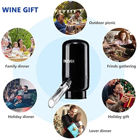 El aireador y dispensador de vino instantáneo eléctrico es adecuado para banquetes, fiestas de cumpleaños, herramientas de vertedor de vino, cena familiar, viajes, camping, bodas, vida cotidiana. Podemos utilizarlo como regalo de cumpleaños, regalo de Año Nuevo, regalo de Navidad, regalo de San Valentín, regalo de boda, caja de regalo de vino de lujo de gama alta, es el mejor regalo para los amantes del vino