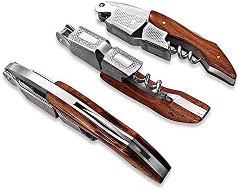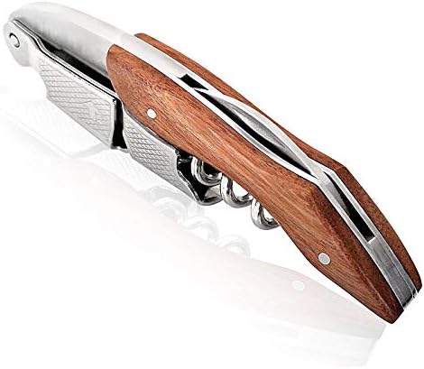 Características: 3 en 1: Abrebotellas de corona, cortador de aluminio dentado y sacacorchos ranurado. Abrebotellas de corona: Abre tus botellas de cerveza en cuestión de segundos. Cortador de aluminio dentado curvado y dentado elimina las láminas de vino con facilidad. Sacacorchos ranurado: Diseñado para una inserción suave y evita que el corcho se desmorone. Doble bisagra: Diseñado para manejar incluso los corchos más largos y proporcionar un apalancamiento adicional para un tirón suave. Mango de palisandro: Mango de palisandro de alta calidad para un agarre suave y cómodo. Construido para durar: Hecho de acero inoxidable