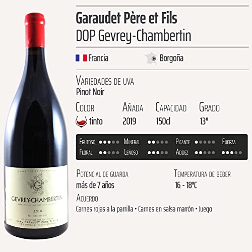 Descubre el Gevrey-Chambertin MAGNUM tinto 2019 de Garaudet Père et Fils, un vino excepcional de la DOP Borgoña, Francia. Este tinto, elaborado exclusivamente con uvas Pinot Noir, es ideal para los amantes del buen vino que buscan una experiencia sensorial inigualable. Perfecto para celebraciones, cenas especiales o como un regalo sofisticado, este vino en formato magnum (3x150cl) garantiza que cada ocasión sea memorable.