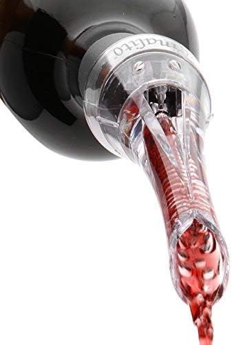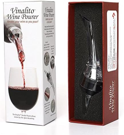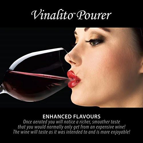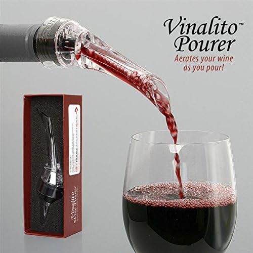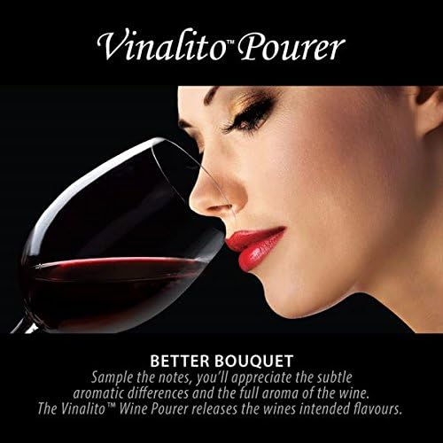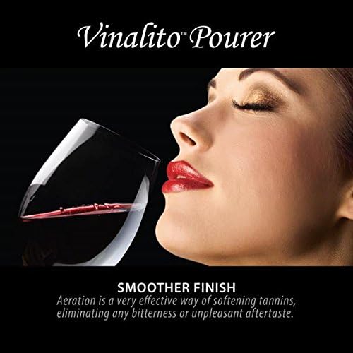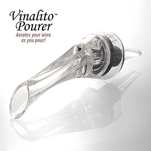El vertedor y aireador de vino Vinalito te permite airear el vino tú mismo mientras sirves. Mientras lo viertes, verás y escucharás las burbujas que fluyen a través del vino, mejorando al instante el buqué y los sabores. Los vinos se benefician al ser aireados antes de servirlos para mejorar el sabor y el buqué. El vertedor y aireador Vinalito permite la decantación instantánea en la copa. ¿Por qué airear vino? Mejor buqué. Prueba las notas, apreciarás las sutiles diferencias aromáticas y el completo aroma del vino. El vertedor de vino Vinalito libera los sabores de los vinos. Mejora el sabor. Una vez aireado, notarás un sabor más rico y más suave que normalmente obtendrías de un vino caro. El vino tendrá el sabor que tenía planeado y será más agradable. Acabado más suave. La aireación es una manera muy eficaz de suavizar los taninos, eliminando cualquier acidez o desagradable saborcillo. Sin ensuciar. Cuenta con una salpicadera extraíble para permitir entrar al aire, pero no que el vino salga. Cuenta con un sistema de entrada de aire tanto para airear como verter. Mejora el buqué y sabor del vino mientras viertes, mediante la inyección de aire directamente en el vino. Boquilla vertedora antigoteo. Limpieza: Enjuaga con agua cálida y jabonosa.