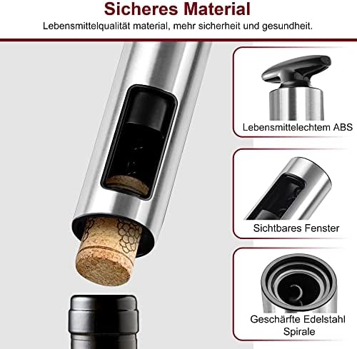 ???? SEGURO Y DE ALTA CALIDAD: el kit de abrebotellas está hecho de material de calidad alimentaria y la espiral interior está hecha de acero inoxidable de alta calidad, lo que ayuda a evitar que la tapa se agriete o se desmorone y evita la contaminación de su bebida.