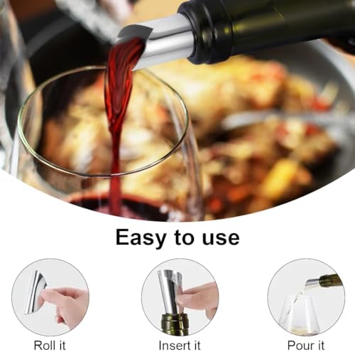 ???? 【Fácil de usar】 Simplemente enrolle la gota de vino, inserte la mitad del cuello de la botella y, después de aflojarlo, el vertedor de vino se puede abrir y encajar completamente en la abertura, simple y fácil de usar.
