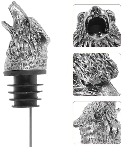 aireador de vino con cabeza de lobo, vertedor de vino, vertedor de licor de aleación, decantador de vino con tapón de botella, vertedor de vino de estilo retro, tapón para verter botellas, tapón para whisky plateado