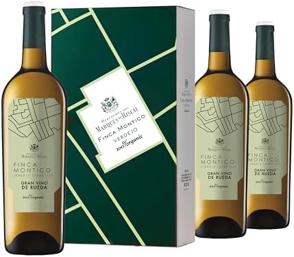 Caja estuche de 3 botellas de 750 ml de Marqués de Riscal – Vino blanco Finca Montico 100% Organic D.O. Rueda