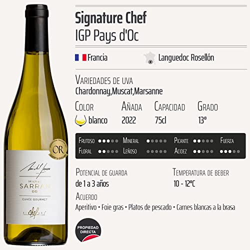 Descubre el MICHEL SARRAN Cuvée Gourmet blanco 2022, una exquisita selección de vinos inspirada por el renombrado chef Michel Sarran. Este vino, producido en la región de IGP Pays d’Oc, Languedoc Rosellón, en Francia, destaca por su combinación de variedades de uva Chardonnay, Muscat y Marsanne. Ideal para amantes de la buena gastronomía, especialmente para aquellos que disfrutan de vinos de alta calidad que complementan perfectamente una variedad de platos o que simplemente buscan un brindis especial. ¡Convierte tus momentos en experiencias memorables con esta joya enológico!