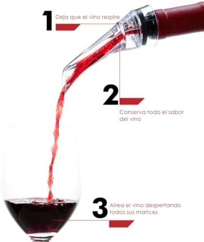 Aireador al Instante: Disfruta del sabor de tu vino. Este aireador dispensador te permite incluir oxígeno al momento de servir el vino, aireando y liberando todo su aroma.