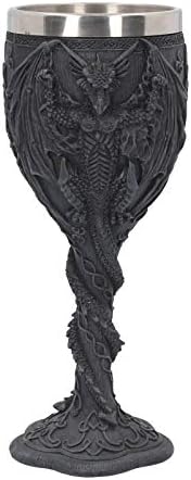 Este producto es para uso ornamental. La bestia de color negro se aferra al lado del cáliz, sus ojos penetrantes mirando hacia adelante. Detrás del dragón, la base está cubierta con un patrón de espiral celta ornamentado. Bajando por el tallo, la cola de los dragones gira. Fundido en la resina más fina antes de ser cuidadosamente pintado a mano, este cáliz es perfecto para cualquier persona que tenga una pasión por las bestias míticas.