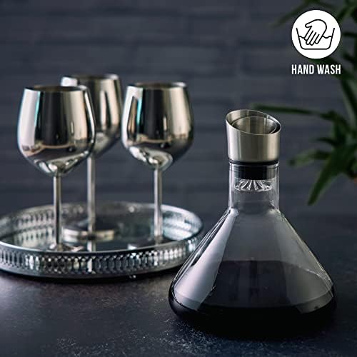 Calidad Superior – Hecho de cristal 100% de alta calidad, el decantador es resistente y duradero. La tapa del vertedor de acero inoxidable ayuda a la eficiencia. Capacidad de volumen: 1500 ml