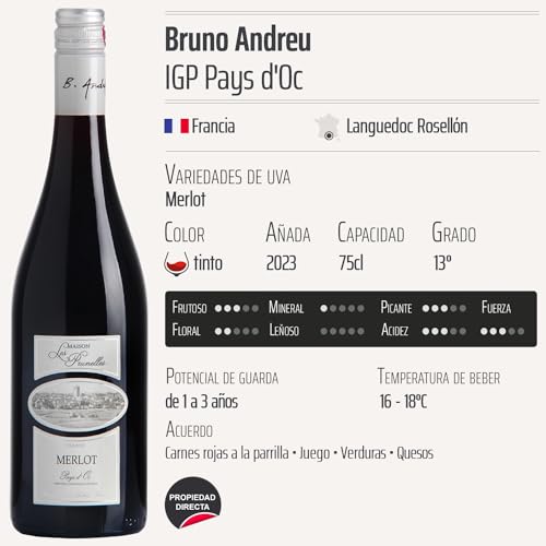 El Pays d’Oc Maison Les Prunelles Merlot tinto 2023 se destaca por su perfil aromático, donde predominan las notas de frutas rojas maduras y un ligero toque de especias. Su textura es suave y aterciopelada, lo que lo convierte en un vino fácil de beber, incluso para aquellos que recién comienzan a apreciar los tintos. Este Merlot es apto para maridar con una amplia variedad de platos, desde carnes asadas hasta pastas y quesos, lo que lo hace una elección ideal para cualquier ocasión.