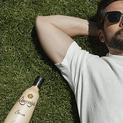 La crema de orujo Ruavieja se elabora con crema de leche, aguardiente de orujo seleccionado de calidad, caramelo y extractos de café y cacao. Es de color beige y se caracteriza por su untuosidad, su equilibrio y la persistencia de sus sabores. Su toque dulce combina con los beneficios digestivos del orujo, y la convierten en el final ideal de cualquier comida. Esta crema de orujo es compleja en cuanto a romas, combinando intensas notas a chocolate, café tostado, caramelo, un toque a toffee y ligeras notas de avellana, praliné y frutos secos. Es equilibrada al paladar y su menor contenido en azúcar permite apreciar la mezcla de aguardiente con café y cacao, otorgándole un carácter propio. Para disfrutar de la de la Crema de Orujo Ruavieja se recomienda enfriar la botella y servir con hielo en un vaso ancho.