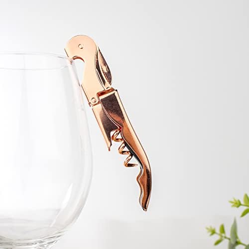 ????DISEÑO ELEGANTE Y RESISTENTE: Este sacacorchos está fabricado con materiales de alta calidad, con un recubrimiento exterior galvanizado en color cobre rosé que le da un aspecto moderno y sofisticado. Además, su estructura de acero inoxidable lo hace resistente y duradero. Presentada en caja individual.