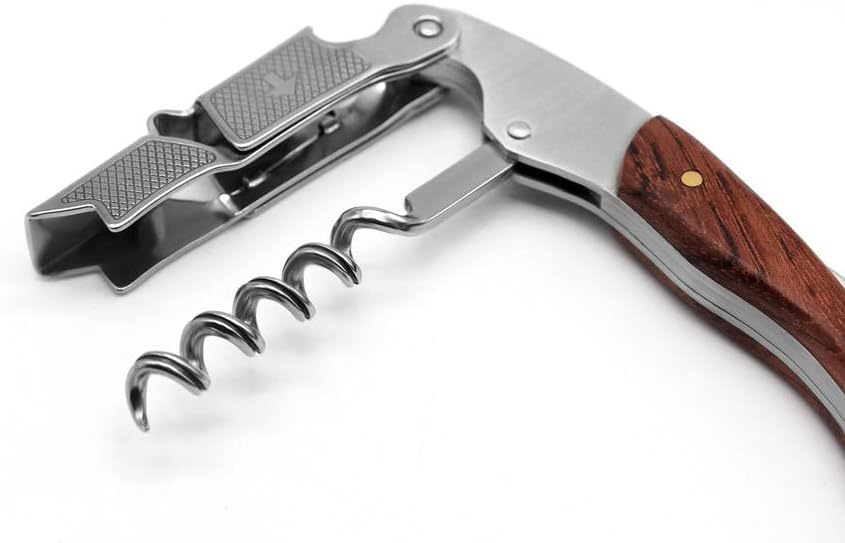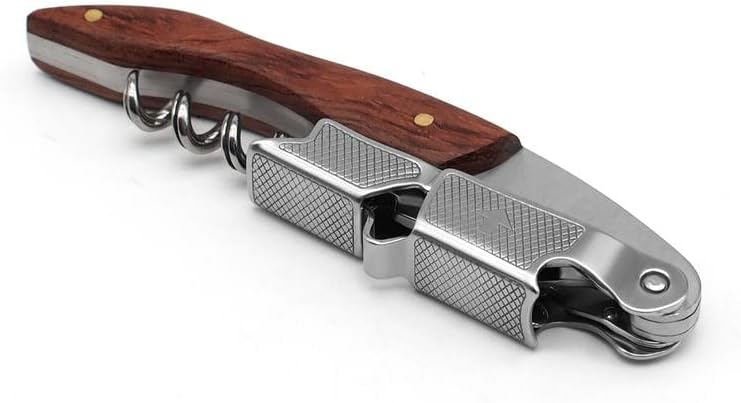 Tiene un mecanismo de doble apalancamiento. Por lo tanto, es muy simple abrir una botella sin dañar el tapón. Por supuesto, está equipado con una cuchilla para cortar la cápsula de la botella de vino y la punta de la palanca sirve como abrebotellas.