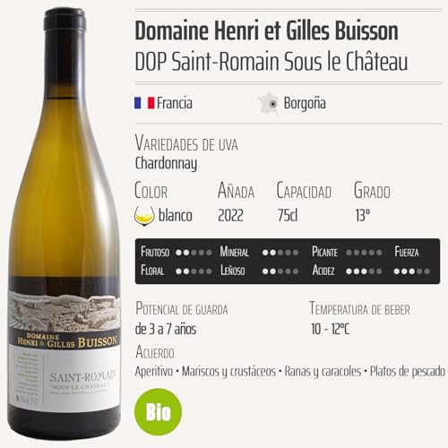 Descubre el excepcional Saint-Romain Sous le Château blanco 2022, una joya orgánica del prestigioso Domaine Henri et Gilles Buisson, que pertenece a la Denominación de Origen Protegida (DOP) de Borgoña, Francia. Este vino, elaborado a partir de las selectas uvas Chardonnay, ofrece una experiencia gustativa sin igual, ideal para amantes del vino que buscan calidad y autenticidad en cada sorbo. Perfecto para maridar con platos ligeros, pescados o simplemente disfrutar en una ocasión especial, este pack de 6 botellas de 75cl es una elección excelente para quienes desean deleitarse con un vino blanco de alta gama.
