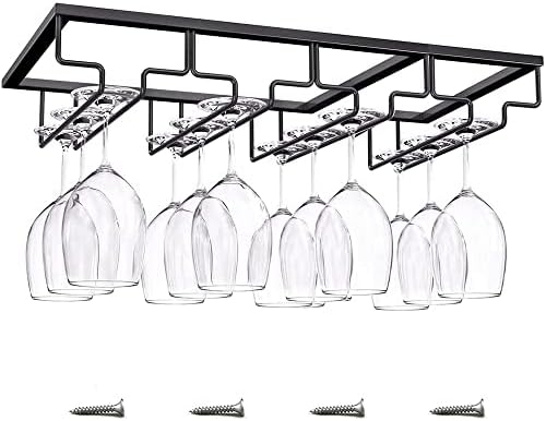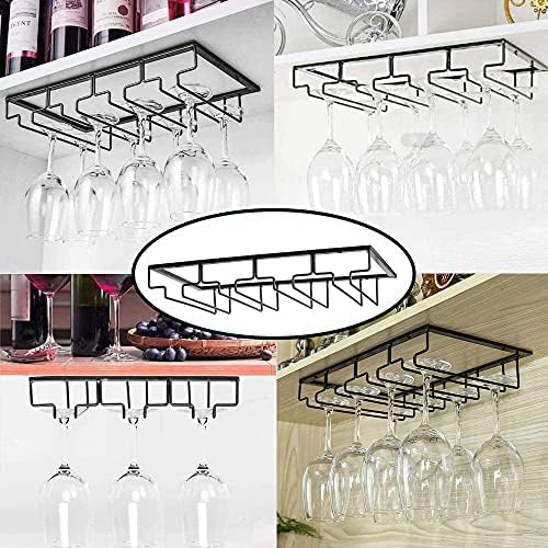 【Four Slot Design】: Nuestro estante de copas de vino tiene 4 ranuras, cada ranura puede colgar 2-3 vasos (dependiendo del tamaño de los vasos), lo que puede ahorrar mucho espacio en la cocina o gabinete de vino y también se utiliza como un efecto decorativo.