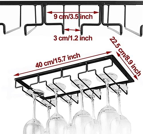 【Amplia Gama de Aplicaciones】:Las líneas elegantes y simples del diseño hacen que el estante de copas de vino se vea hermoso y espacioso. Cada estante tiene capacidad para 4-9 cm de copas de vino y es adecuado para copas de Burdeos, champán, cóctel y otras copas de vino.