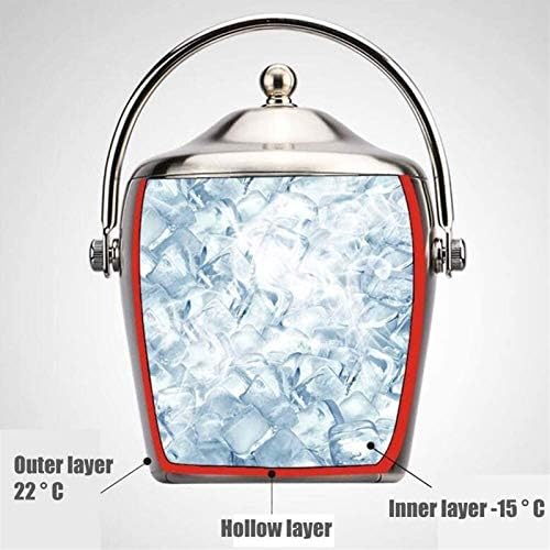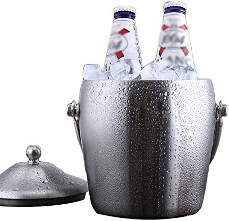 Cubeta de hielo aislada: cubeta de hielo de acero inoxidable de doble pared con pinzas para hielo, cuchara, tapa