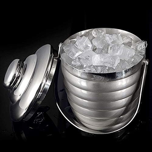 Cubeta de hielo aislada – Cubitera de acero inoxidable de doble pared con pinzas para hielo, cuchara, tapa