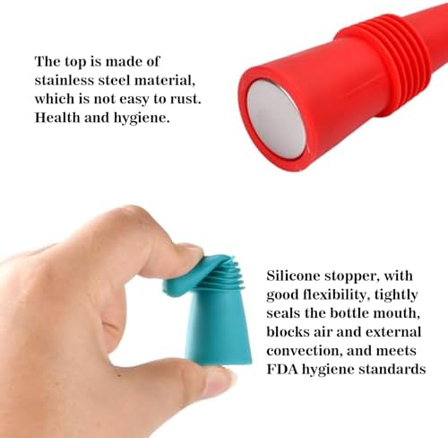 【Duradero y seguro】el interior utiliza acero inoxidable, no corrosivo, duradero, el exterior está hecho de silicona de grado alimenticio, el diseño de doble función permite que el tapón se ajuste firmemente a cualquier botella, proporcionando un sellado perfecto.