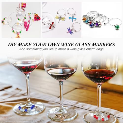 Tamaño y cantidad:viene con 100 piezas de anillos de encantos de copa de vino de acero inoxidable, suficiente para vestir y satisfacer sus diferentes necesidades en la vida diaria. Tamaño: aproximamente 25 mm de diámetro